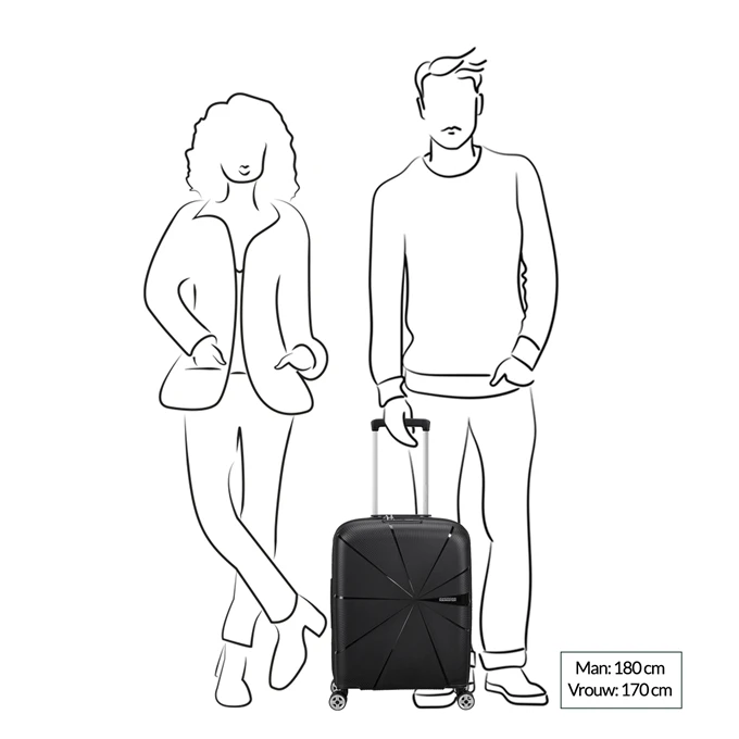 Voor je vakantie, cityrip of zakenreis op zoek naar een koffer die geschikt is om mee te nemen als handbagage? Deze American Tourister Starvibe harde koffer is geschikt om mee te nemen als handbagage aan boord van het vliegtuig. Met een handbagage koffer bespaar je tijd omdat je geen ruimbagage hoeft in te checken en bij aankomst op bestemming ook niet hoeft te wachten tot je koffer van de bagageband afrolt. Daarnaast scheelt het ook nog eens in de portemonnee, omdat ruimbagage vaak extra kosten met zich meebrengt. Tijdwinst, geen gezeul met koffers en ook nog eens voordelig dus. Ons advies is dan ook altijd om te kiezen voor een handbagage koffer, wanneer dit uiteraard mogelijk is wat betreft de hoeveelheid bagage die je wilt meenemen. Deze American Tourister koffer is voorzien van 4 wielen en wordt daarom ook wel een spinner koffer genoemd. Ten opzichte van een koffer met 2 wielen is een spinner koffer wendbaarder en kun je deze rechtop laten staan tijdens het vervoeren. Deze American Tourister koffer heeft een inhoud van 41 liter. Dit is voldoende ruimte voor een reis van 2-3 dagen.