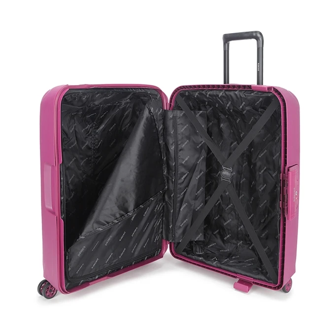Deze koffer is voorzien van inpakriemen, zodat al je spullen goed op z’n plaats blijven zitten en het tijdens je reis geen chaos wordt in je koffer. Met de interne verdeler splits je je koffer op in 2 compartimenten met een rits tussenschot.