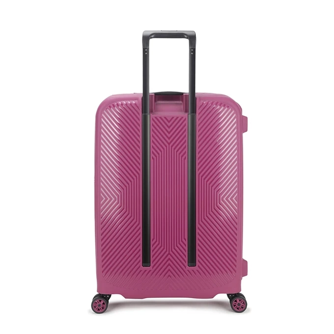 Het grote voordeel van een ruimbagage koffer ten opzichte van een handbagage koffer is dat je gewoonweg meer bagage kunt meenemen. Ga je dus voor langere tijd op reis, of wil je gewoon ruimte over hebben om zo ook eventuele aankopen weer mee te kunnen nemen, ga dan voor een ruimbagage koffer. Omdat je naast een ruimbagage koffer ook vaak een (gratis) tas of rugzak mee kunt nemen, heb je toch je essentials bij de hand tijdens de vlucht. Deze harde koffer uit de Axiss-Fix serie van Decent is gemaakt van polypropyleen en je krijgt er 2 jaar garantie op. Deze Decent koffer is voorzien van 4 wielen en wordt daarom ook wel een spinner koffer genoemd. Ten opzichte van een koffer met 2 wielen is een spinner koffer wendbaarder en kun je deze rechtop laten staan tijdens het vervoeren.