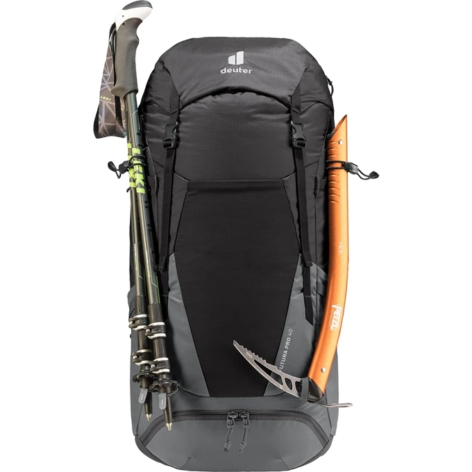 Op zoek naar een geschikte backpack voor meerdaagse tochten? Ga dan voor de Futura Pro 40 van Deuter. De backpack is erg praktisch in gebruik dankzij de verscheidende opbergvakken aan de binnen- en buitenzijde. Zo heeft de backpack een dekselvak, een apart bodemvak, elastische buitenvakken,een elastisch voorvak eneen binnenvak voor waardevolle spullen. Om goed gehydrateerd te blijven tijdens de tocht is de backpack voorbereid op een drinksysteem. De bevestiginslussen voor een wandelstok, de reflecterende details en de afneembare regenhoes maken deze backpack helemaal compleet. Hetergonomisch gevormde Aircomfort Sensic Pro mesh rugsysteem, de beweeglijke heupvinnen en de Active-Fit schouderbanden zorgen voor een zeer comfortabel draaggemak.