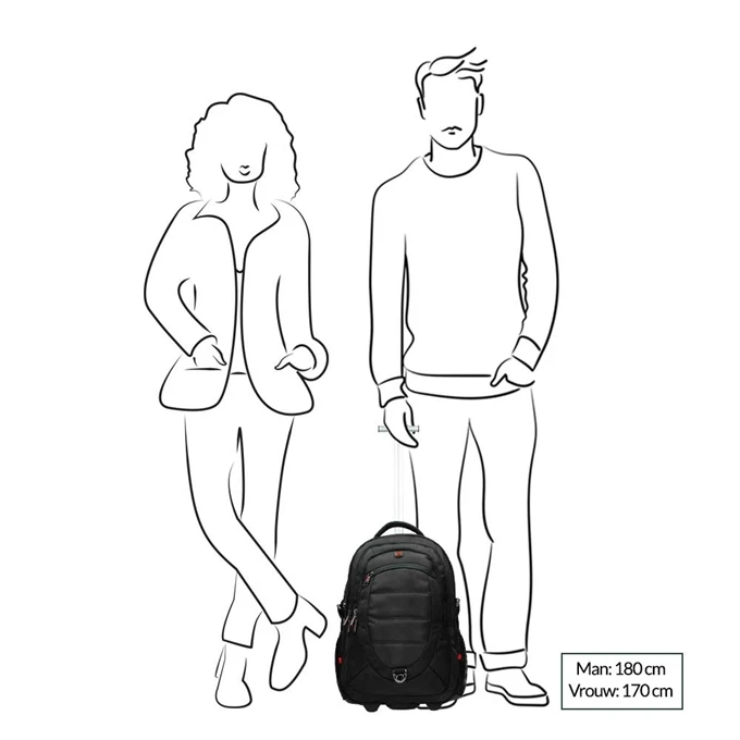 De Cornell Trolleyrugzak van Enrico Benetti is een fijne reisgezel voor zakenmensen die veel onderweg zijn. Deze veelzijdige Trolleyrugzak is eenvoudig te vervoeren dankzij de twee soepele wielen en de uitschuifbare trekstang. Is de ondergrond niet geschikt om te rollen of even vaart versnellen? Draag de Trolleyrugzak dan comfortabel als rugzak over de schouders. Alle eigendommen krijgen overzichtelijk een eigen plaats dankzij de diverse opbergvakken. Het hoofdcompartiment is erg ruim en is voorzien van een gewatteerd 17” laptopvak en elastische inpakriemen voor kleding. Het tweede ritscompartiment is voorzien van een gewatteerd tabletvak en heeft plaats voor de bijbehorende accessoires. Verder heeft de rugzak een derde compartiment met een organisatiepaneel dat onder andere is voorzien van pennenhouders, ritsvakken en insteekvakken.