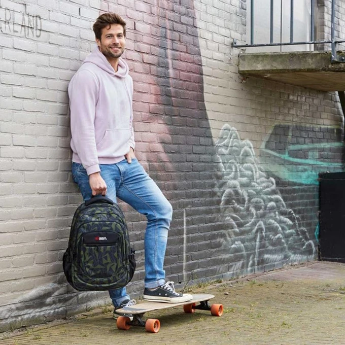 Een stoere print, een uitstekend draagcomfort en veel organisatiemogelijkheden: dit is deSanta Cruz 17.3” Laptop Rugzak van Enrico Benetti. Het gewatteerde rugpaneel zorgt voor een goede ventilatie en dankzij de gewatteerde schouderbanden is de tas ook prettig te dragen als deze is volgeladen. Het achterste ritscompartiment heeft plaats voor een 17.3” laptop en de bijbehorende accessoires. Daarnaast zijn kleinere eigendommen georganiseerd op te bergen in het tweede ritscompartiment en het organisatiepaneel dat is voorzien van pennenhouders en diverse insteekvakken. Drinkflessen zijn bij de hand te houden dankzij de mesh zijvakken.