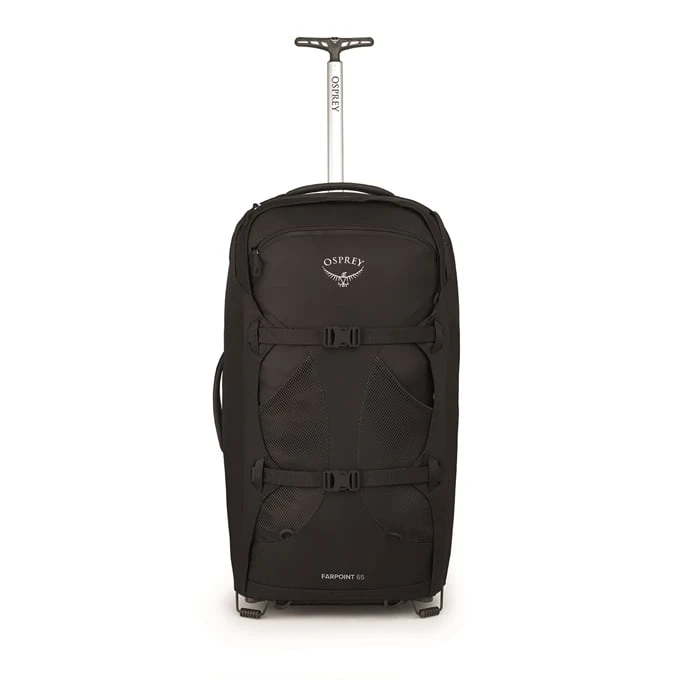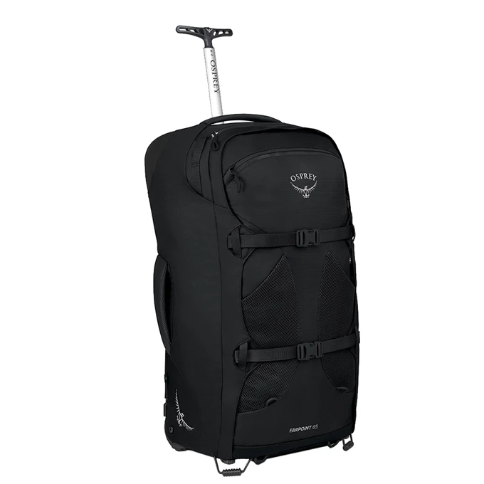 De Farpoint Wheels 65 van het merk Osprey is de combinatie van een backpack en een koffer. Het interieur van de backpack is voorzien van twee compressiebanden en twee organizer mesh-vakken. De banden van de backpack zijn weg te werken achter een oprolbaar achterpaneel. Door de gewatteerde schouderbanden en rugpaneel is de backpack comfortabel te dragen. Ook kun je de backpack meetrekken dankzij de meertraps trekstang en de twee soepele wielen. Kortom de ideale backpack om mee op reis te gaan.