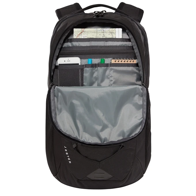 Is deze backpack uit de Jester van het merk The North Face iets voor jou? Deze The North Face tas is voorzien van een geïntegreerd laptopvak, geschikt voor een laptop van maximaal 15″. Wil je 100% zeker weten dat je laptop ook echt past? Meet dan de buitenafmeting van je laptop even op. Deze dient kleiner te zijn dan de buitenafmetingen van deze tas (H 46 x B 28 x D 21). Op deze tas wordt 2 jaar garantie gegeven. Het gevoerde laptopvak zorgt voor extra bescherming zodat jouw laptop veiling kan worden meegenomen. Jouw kostbare laptop kan zo niet beschadigd worden door andere items in je tas. Niet alleen jouw laptop wordt veilig vervoerd, maar ook je tablet is helemaal veilig opgeborgen in deze tas. Plaats de tablet in het vak en ook deze is beschermd.