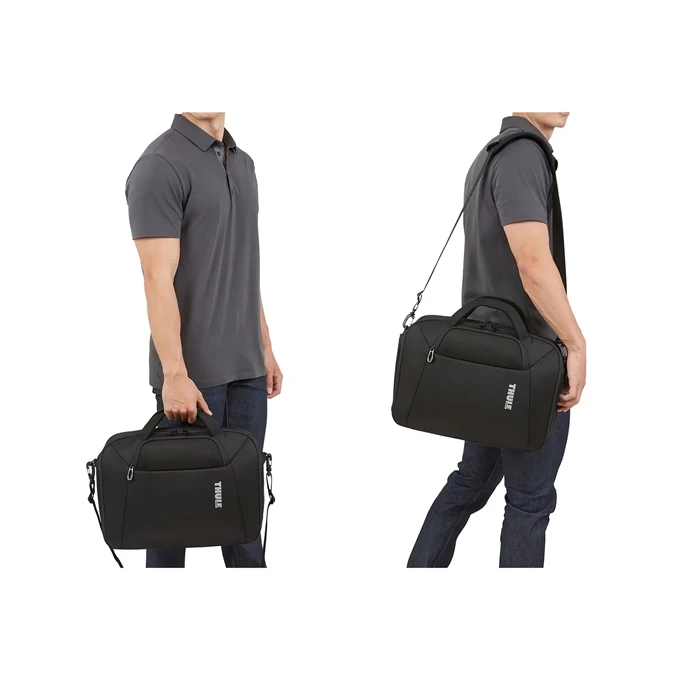 Deze tas met laptopvak van Thule is een stijlvolle tas, die voorzien is van een 15,6″ laptopvak. Deze tas is uitermate geschikt om te gebruiken als werktas, maar kan natuurlijk ook als alledaagse tas gebruikt worden, waarin je soms ook je laptop meeneemt. Om er zeker van te zijn dat je laptop past in deze Thule Accent tas is het aan te bevelen om de buitenafmetingen van je laptop even op te meten en deze naast de buitenafmetingen van deze tas te leggen. Als je zeker wilt weten dat je laptop past, dan dient de buitenafmeting van je laptop kleiner te zijn dan deze tas met laptopvak. De buitenafmetingen van de tas zijn H 30 x B 44 x D 13 cm en je krijgt op deze tas 2 jaar garantie.