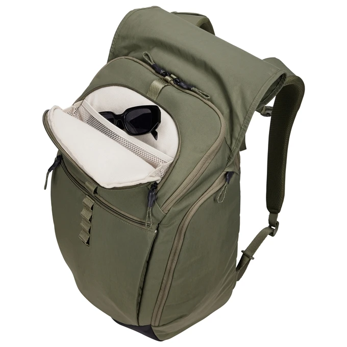 De Thule Paramount Backpack 27L is een royale rugzak die je gemakkelijk meeneemt naar je werk maar die ook een prima reisgenoot is tijdens een zakentrip of vakantie. Het hoofdvak met rits en aparte gevoerde kleine vakken voor waardevolle spullen worden beschermd met een waterbestendige flap. Voor je laptop van maximaal 15,6″ en je tablet is een gevoerd vak beschikbaar. Het vak op de schouderriem is ideaal voor een OV-vervoerbewijs wat je kunt pakken zonder de rugzak af te hoeven doen. Je overige persoonlijke eigendommen berg je overzichtelijk op in de vele opbergvakken, zowel met gaas als gevoerd. De Thule Paramount Backpack 27L heeft comfortabele gevoerde schouderriemen en ventilatie in het rugpaneel. Een handig zijvak biedt plaats aan een waterfles.