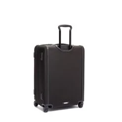Het grote voordeel van een ruimbagage koffer ten opzichte van een handbagage koffer is dat je gewoonweg meer bagage kunt meenemen. Ga je dus voor langere tijd op reis, of wil je gewoon ruimte over hebben om zo ook eventuele aankopen weer mee te kunnen nemen, ga dan voor een ruimbagage koffer. Omdat je naast een ruimbagage koffer ook vaak een (gratis) tas of rugzak mee kunt nemen, heb je toch je essentials bij de hand tijdens de vlucht. Deze pilotenkoffer uit de Alpha serie van Tumi is gemaakt van nylon en je krijgt er 5 jaar garantie op. De koffer heeft 4 wielen; koffers met 4 wielen hebben meer stabiliteit en zijn wendbaarder dan koffers met 2 wielen.