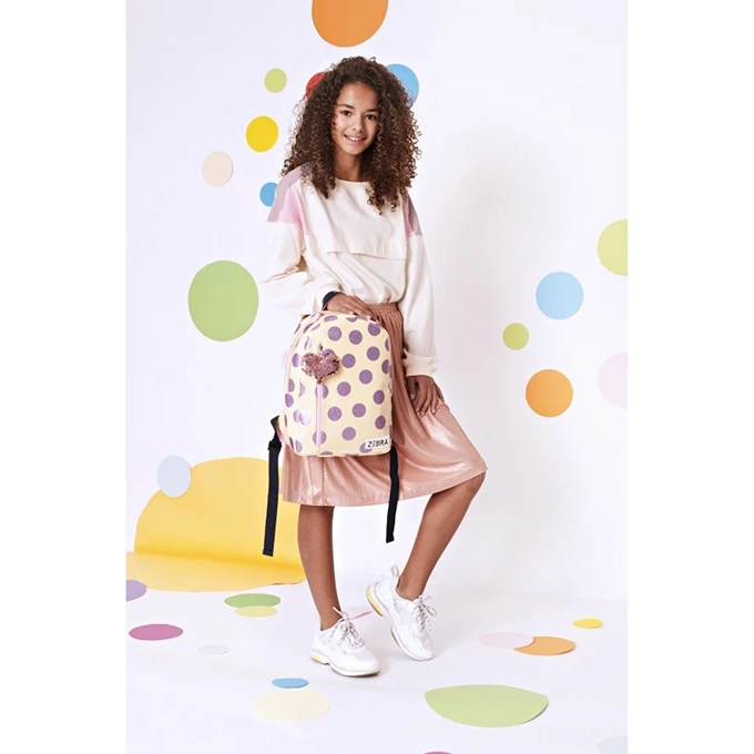 De Zebra Trends Rugzak M is een stoere en schattige rugzak voor meisjes. De rugzak is gemaakt van imitatie leer, en heeft een opvallende print. De Zebra rugtas heeft een ruim hoofdvak met een ritssluiting, en aan de binnenkant een ritsvak voor kleine spullen. Op de voorzijde van de tas bevindt zich een extra ritsvak dat is afgewerkt met gouden glitter hartjes. De rugzak heeft verstelbare schouderbanden, waardoor deze altijd past, en een zachte rugpaneel voor extra comfort. Zo is je kleine helemaal klaar voor school of een dagje weg.